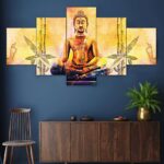 Buddha Set of Five 3D Framed Paintings for Wall Decoration – Ideal for Home, Living Room, and Bedroom (75 x 43 CM)